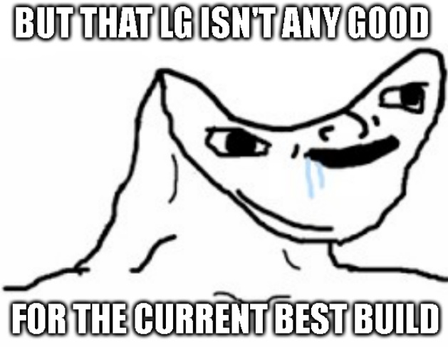 Behold the fixed LG, reborn from the ashes to work for the first time. Pro tip: use at the end of a pvp match to trigger a single proc to penetrate a blocking tank's defenses.