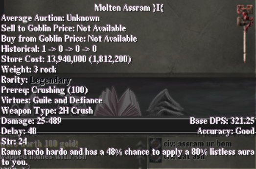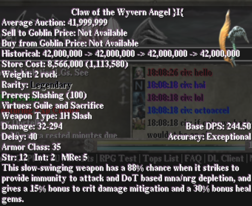 You guys realize we are happy to reveal the logs of people sniping LGs from the store when requested, right? That's how Kryss first got famous Abeltronics: Bought: 1 Barbute of the Aliangel }V{ Date: 06/03/25 14:34:58 Prm Days: 10.4048 Std Days: 0 TCs: 61