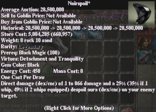 Note, we just tweaked Noirspoil a bit so even noncaster classes, such as pure BMs, might be able to use it in PvP. Both components are dex/cnc, meaning that in order to land them, the caster's dex is used instead of cnc if dex is higher. This works for resists, blocks, and kiting.